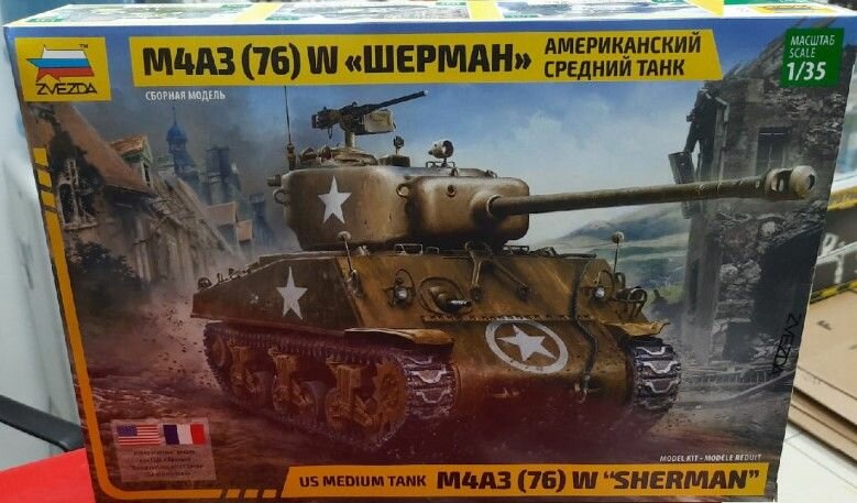 Отзывы на Сборная модель 1:35 Звезда 3676ПН Американский средний танк М4А3 (76) W "Шерман" с 76-мм пушкой (клей+краска+кисть)