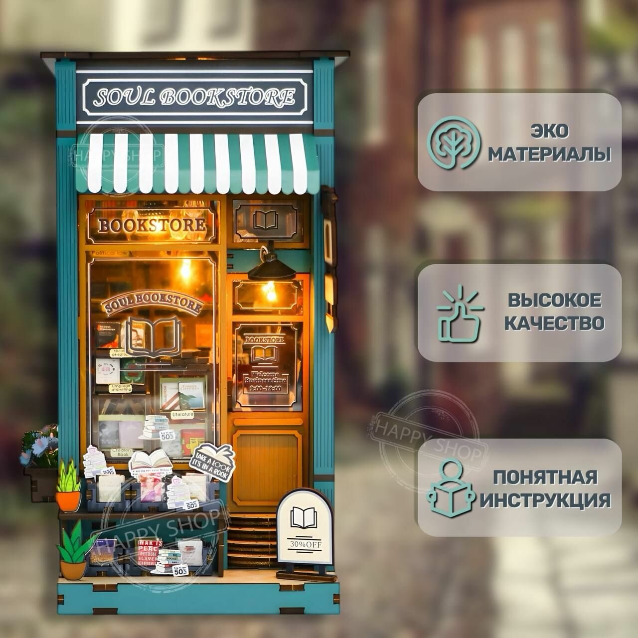 10 цен на Интерьерный конструктор Книжный румбокс "Книжный магазин" с подсветкой / Деревянный пазл 3D подарок ребенку