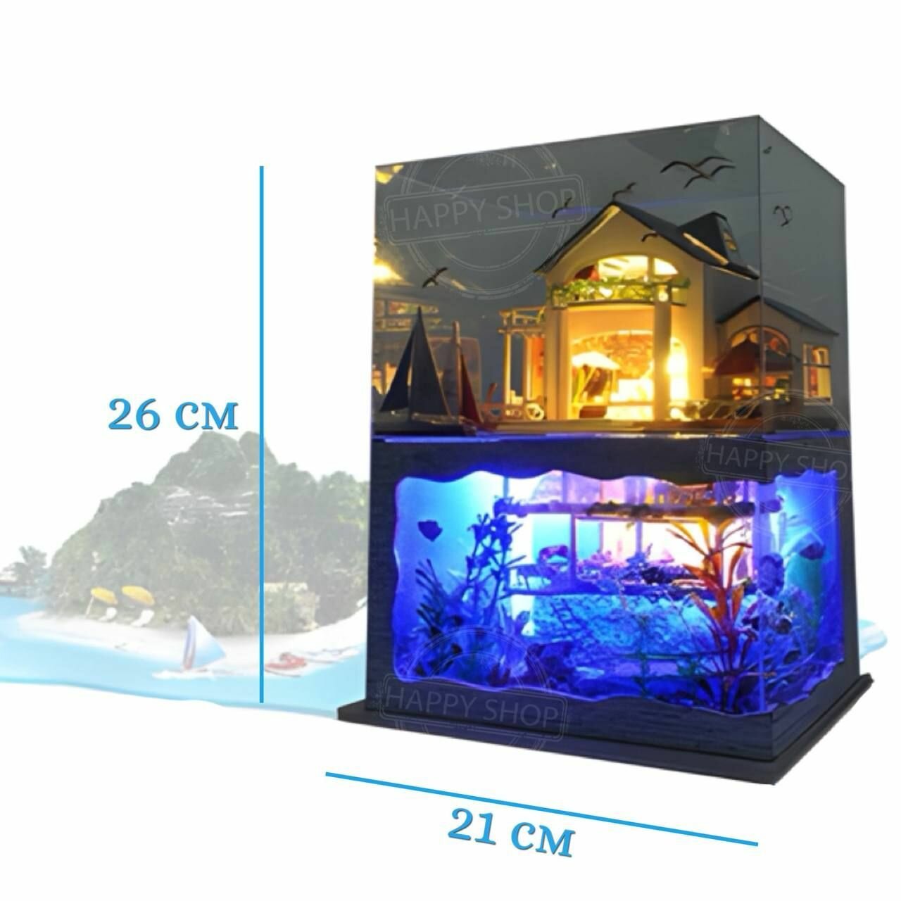 Интерьерный конструктор Румбокс Вилла у моря, с подсветкой и с куполом / Набор для творчества diy house Room box информация: