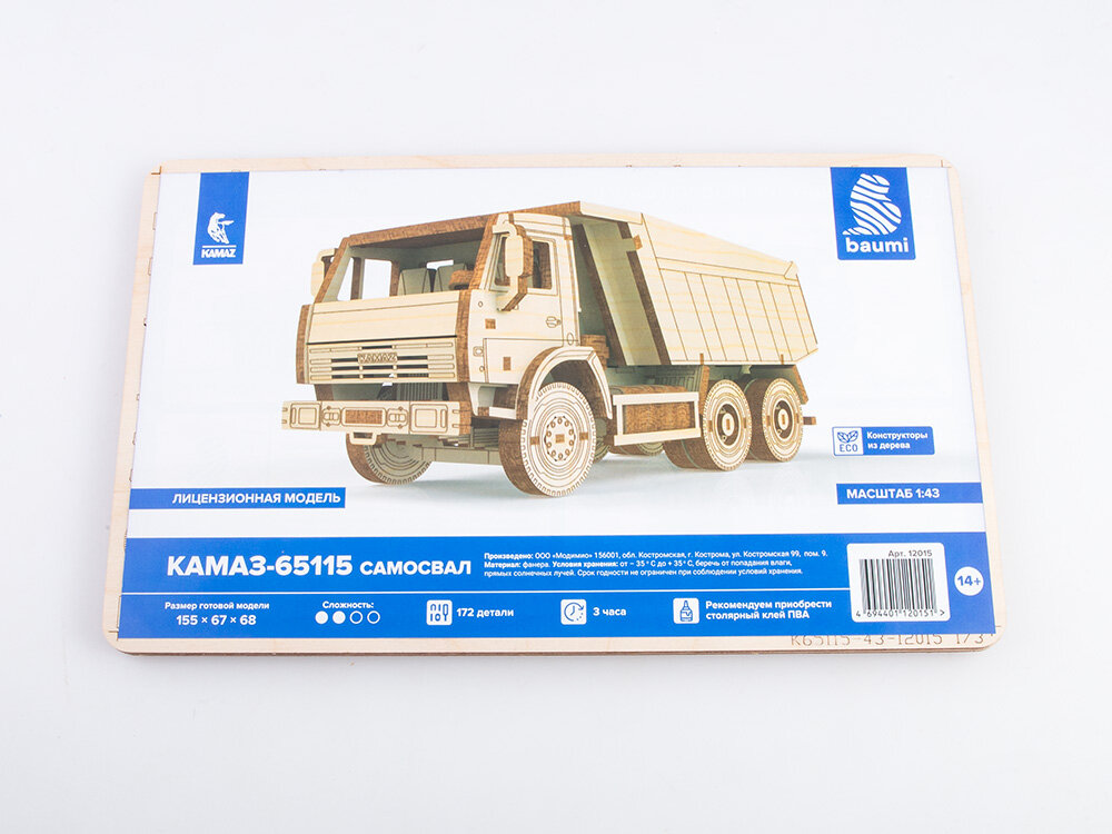 12015 Сборная модель из дерева КАМАЗ-65115 самосвал (ранняя кабина) Baumi 1:43 информация: