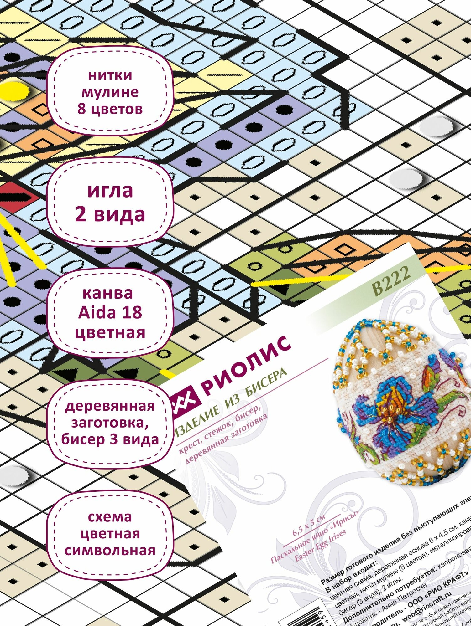 Набор для вышивания крестом Риолис, вышивка крестиком яйцо пасхальное "Ирисы" 6,5*5см, В222 информация: