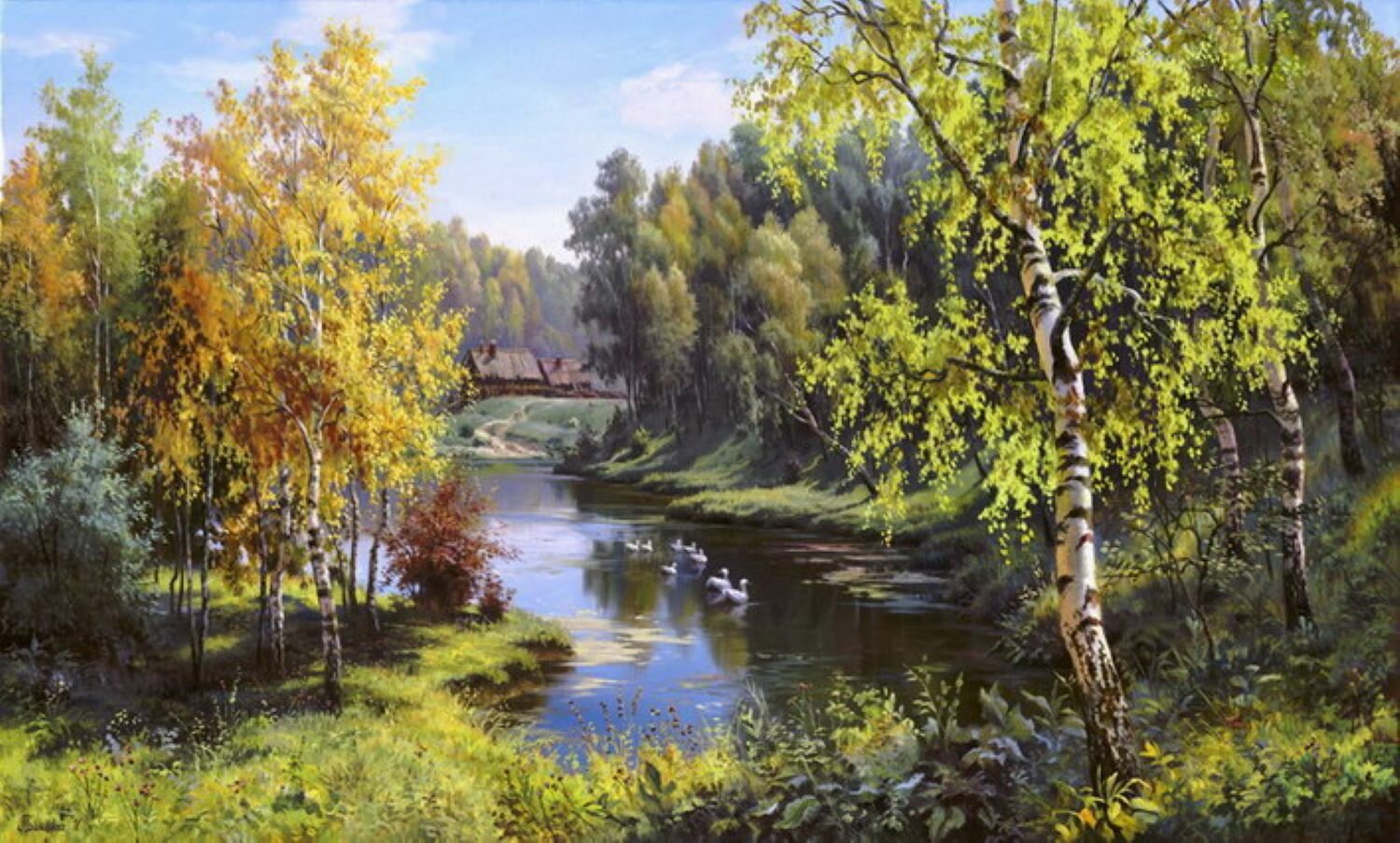 Вышивка крестиком 46х56 - Речка и березы в лесу информация: