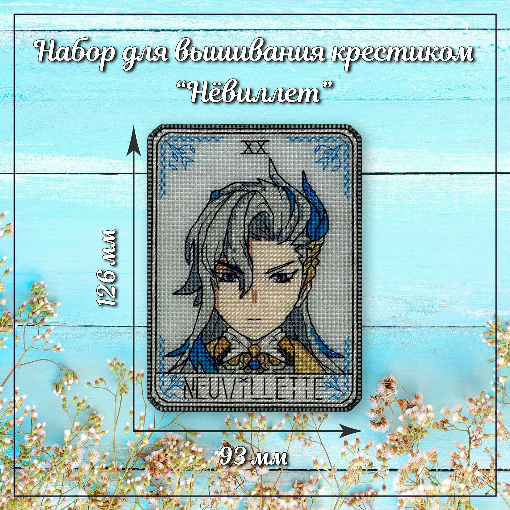 10 цен на Набор для вышивания крестиком на пластике Нёвиллет Геншин, карта Таро Neuvillette, р-р 12,6х9,3 см, 14 каунт, значок