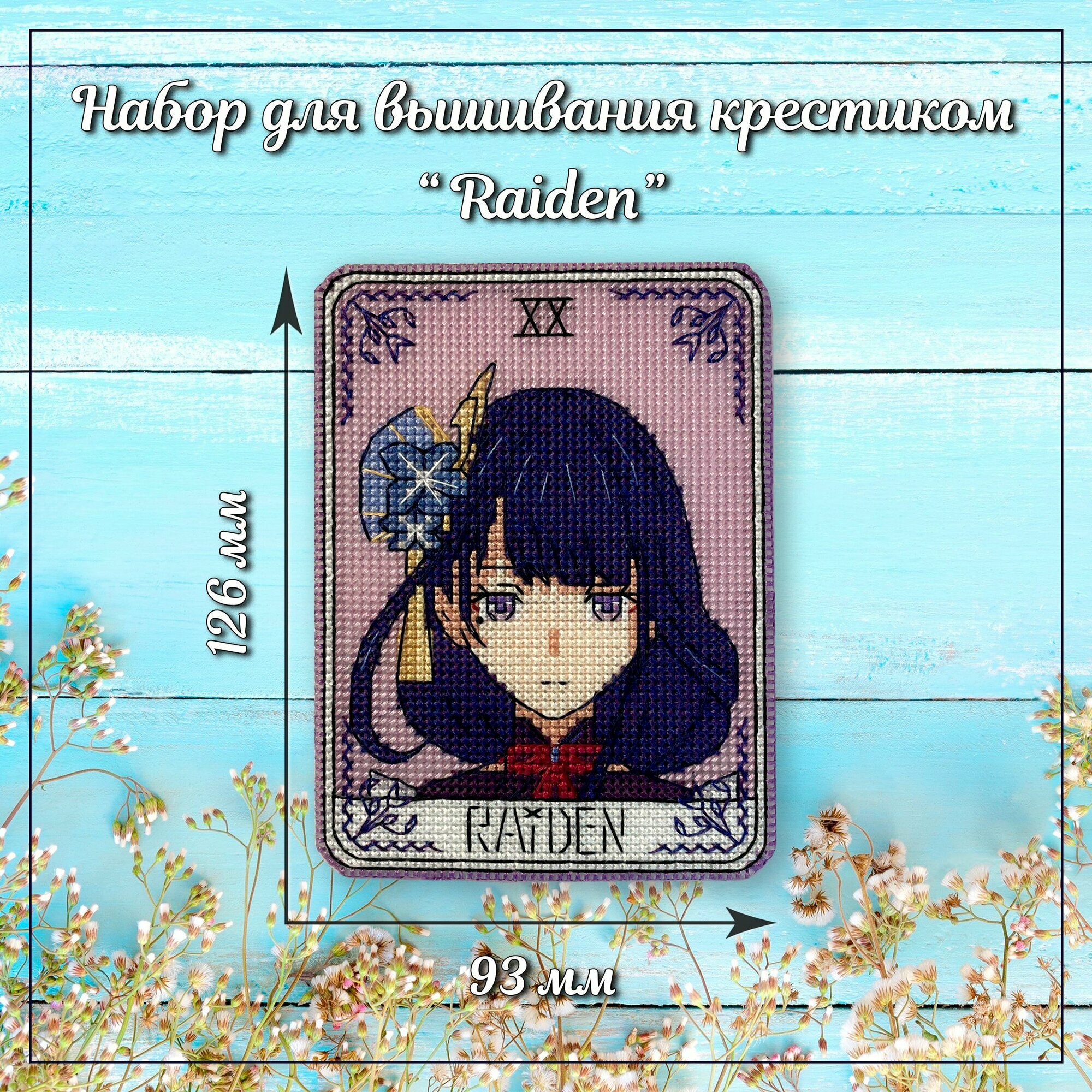 10 цен на Набор для вышивания крестиком на пластике Райдэн Геншин, карта Таро Raiden, размер 12,6х9,3 см, 14 каунт, значок