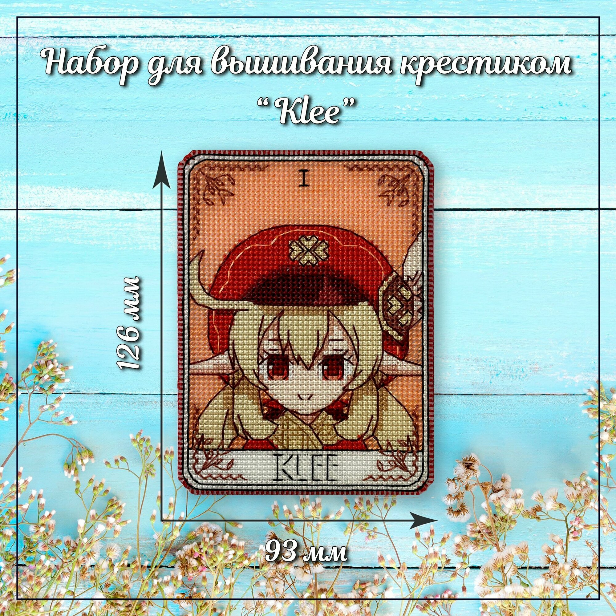 Отзывы на Набор для вышивания крестиком на пластике Кли Геншин, карта Таро Klee, размер 12,6х9,3 см, 14 каунт, значок