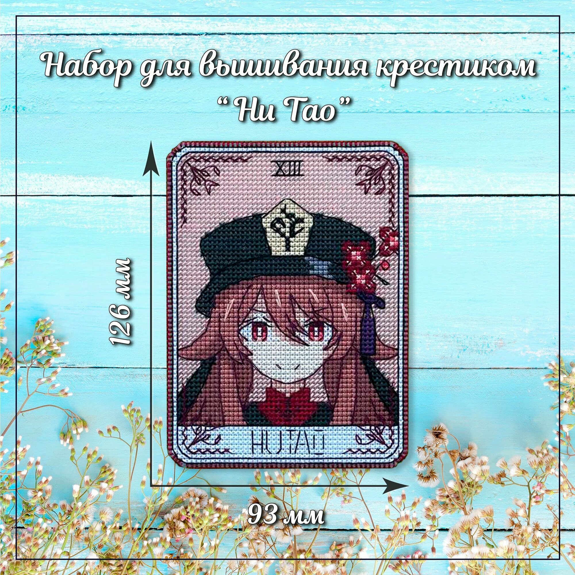 Отзывы на Набор для вышивания крестиком на пластике Ху Тао Геншин, карта Таро Hu Tao, размер 12,6х9,3 см, 14 каунт, значок