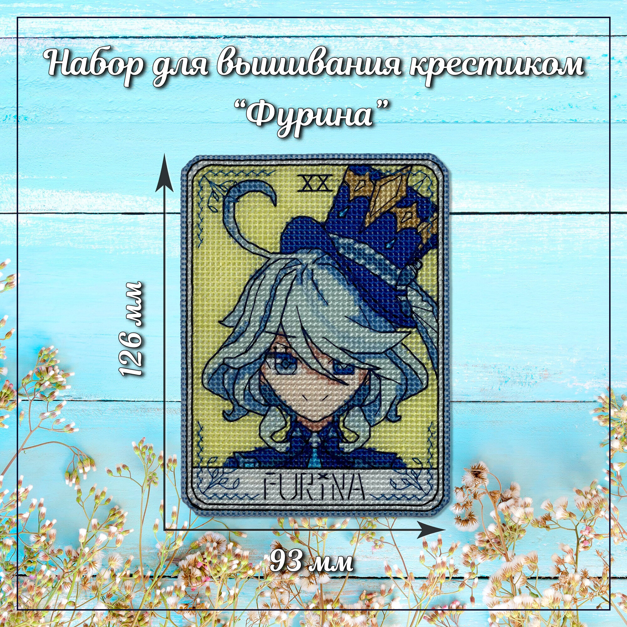 Отзывы на Набор для вышивания крестиком на пластике Фурина Геншин, карта Таро Furina, размер 12,6х9,3 см, 14 каунт, значок