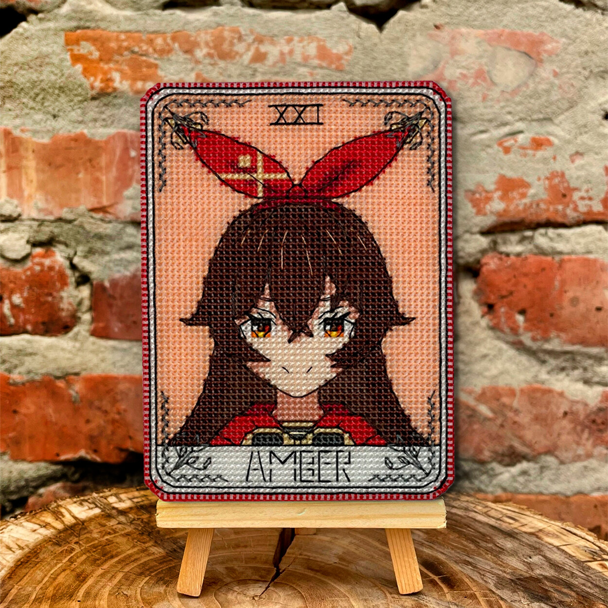 Отзывы на Набор для вышивания крестиком на пластике Эмбер Геншин, карта Таро Amber, размер 12,6х9,3 см, 14 каунт, значок