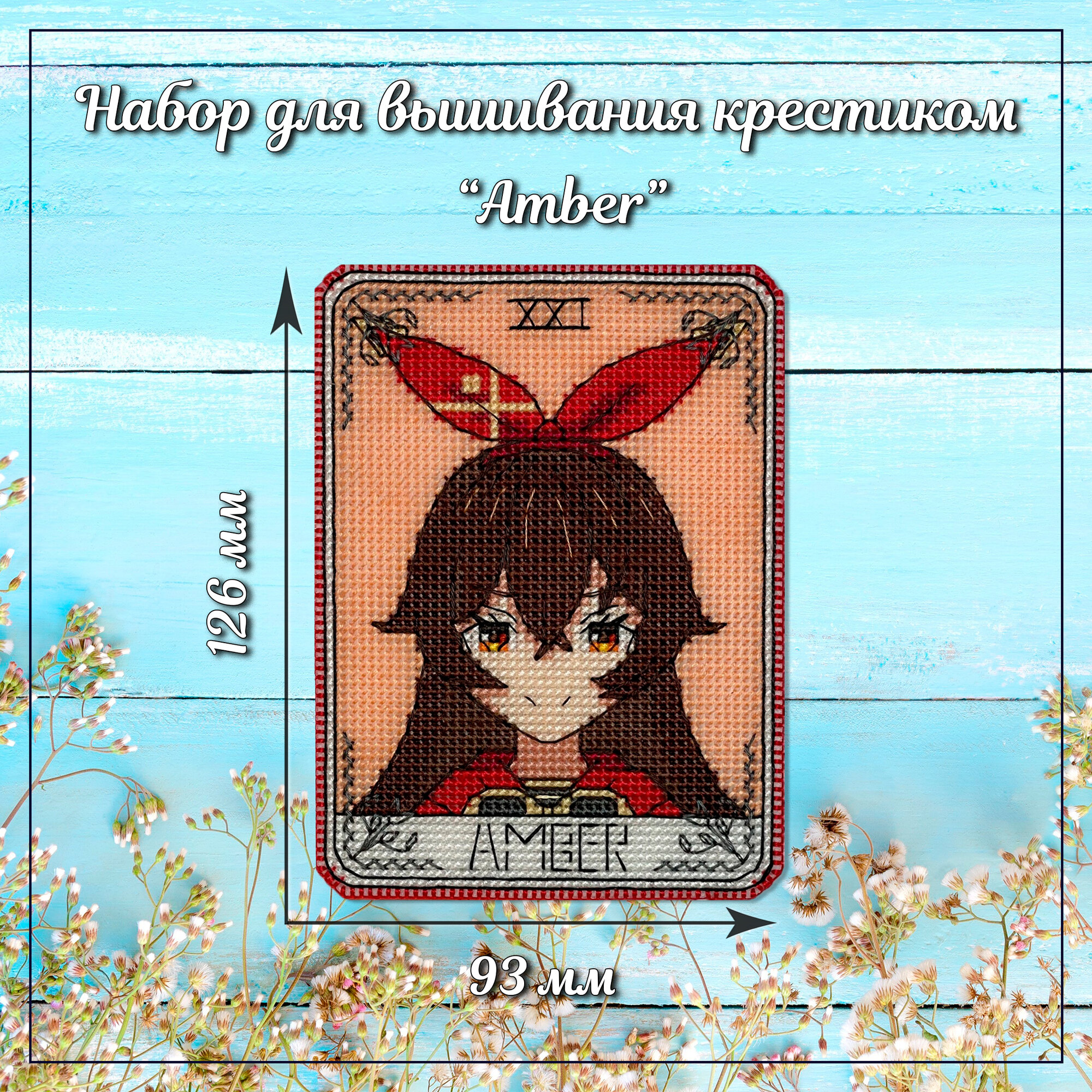 10 цен на Набор для вышивания крестиком на пластике Эмбер Геншин, карта Таро Amber, размер 12,6х9,3 см, 14 каунт, значок