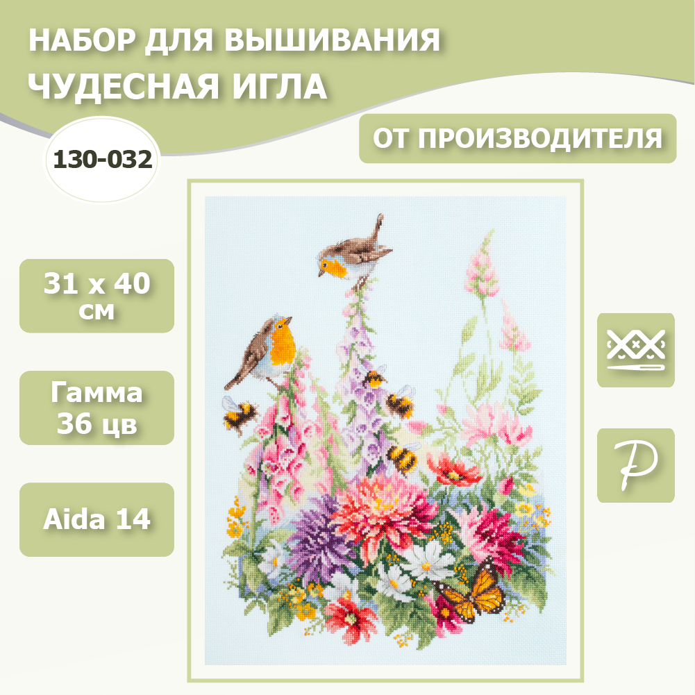 Набор для вышивания Чудесная игла 130-032 "Звонкие малиновки" 31х40см информация: