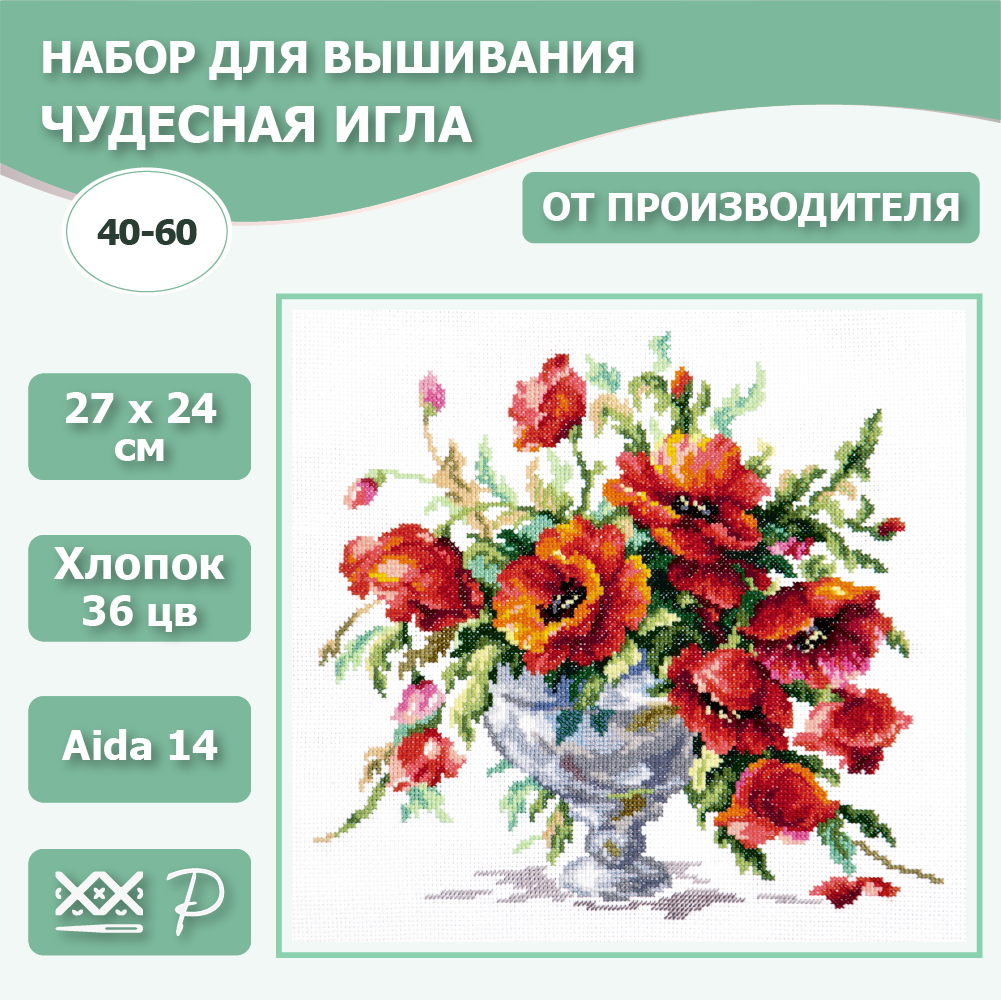 Набор для вышивания Чудесная Игла 40-60 "Красные маки" 27 х 24 см информация: