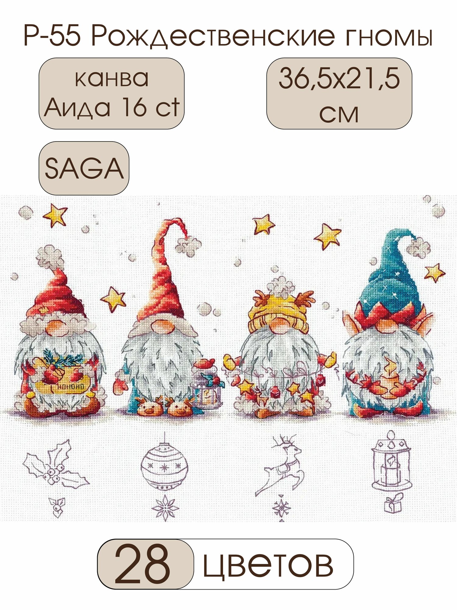 Набор для вышивания крестом Andriana (Сделай своими руками) Р-55 Рождественские гномы, 36,5х21,5 см информация: