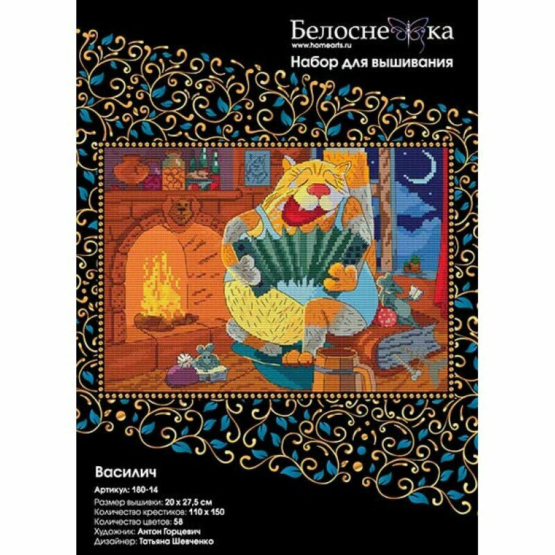 Набор для вышивания крестиком Белоснежка "Василич" / Набор для вышивания крестиком 20х27.5 см / Животные / Котик / Камин информация: