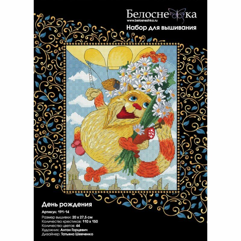 Набор для вышивания крестом Белоснежка "День рождения" / Набор для вышивания крестиком 20х27.5 см / Животные / Котик / Цветы информация: