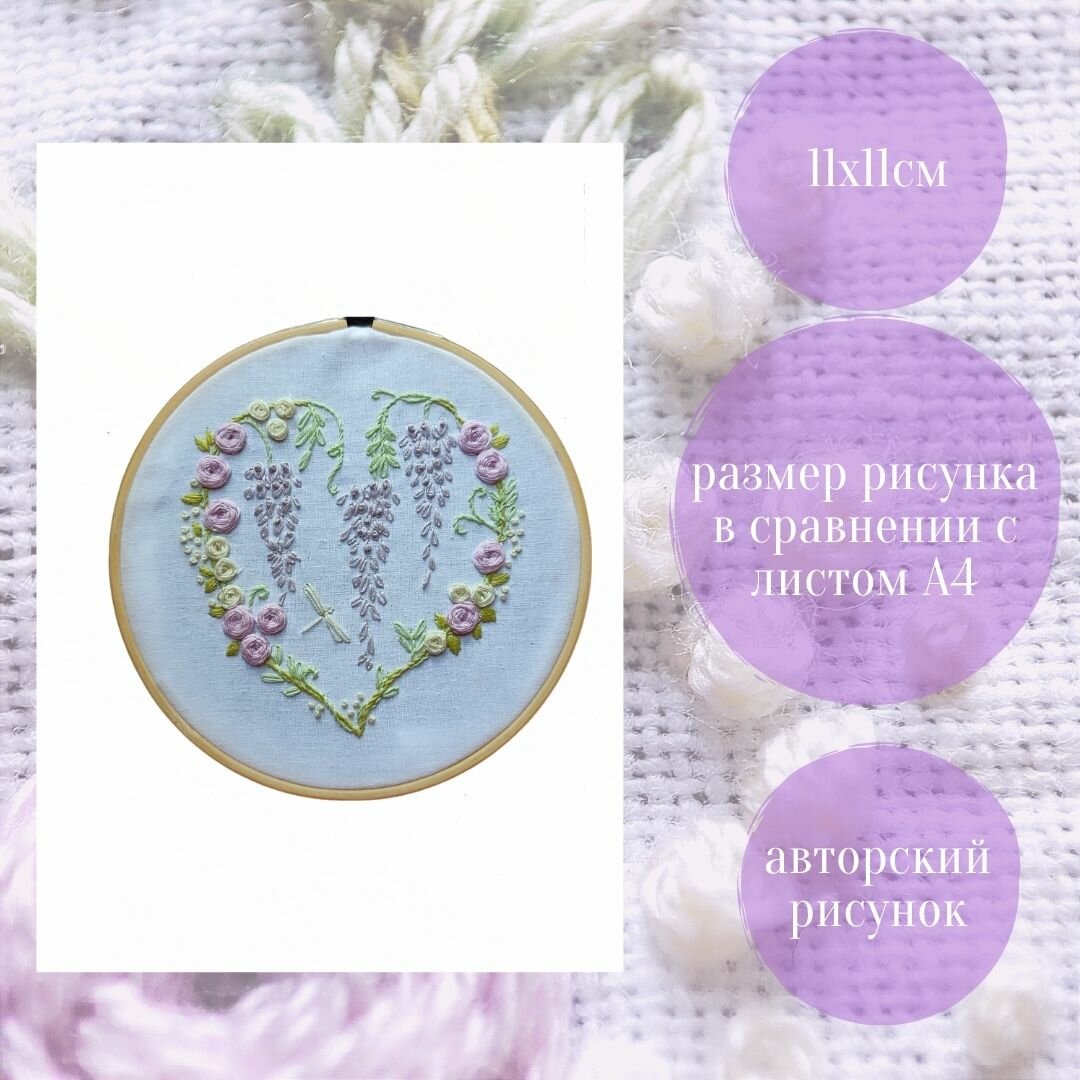 Набор для мини вышивки Глициния и Розы/ Цветочное сердечко 11х11см / Рукоделие в винтажном стиле информация:
