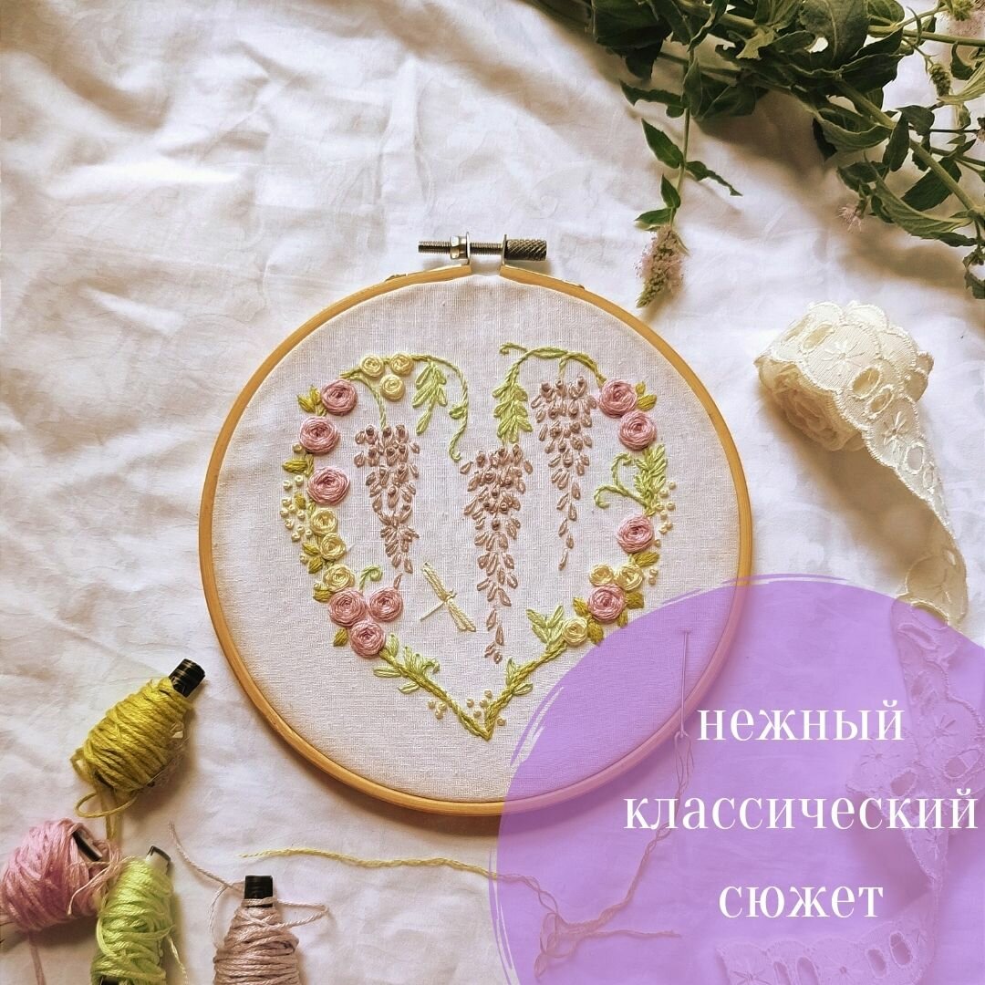 10 цен на Набор для мини вышивки Глициния и Розы/ Цветочное сердечко 11х11см / Рукоделие в винтажном стиле