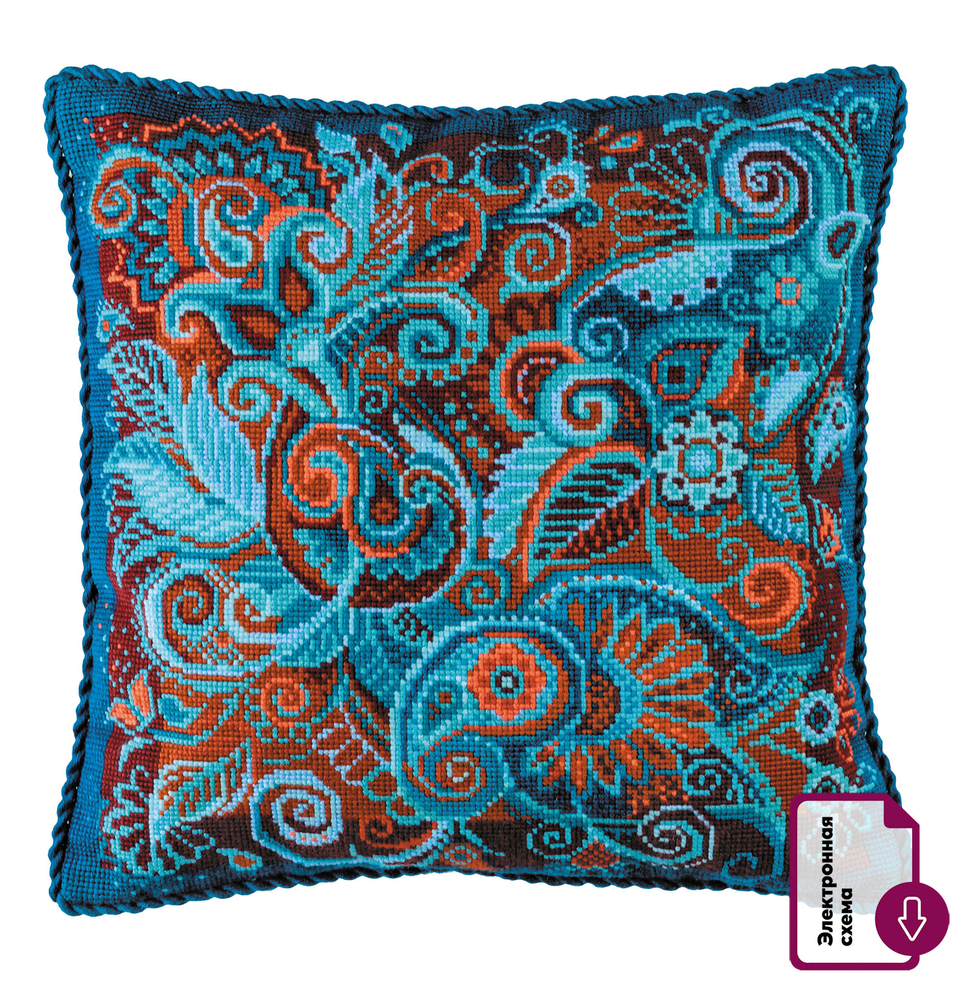 Набор для вышивания крестом Риолис, вышивка крестиком подушка "Персидские узоры" 40*40см, 2183 информация: