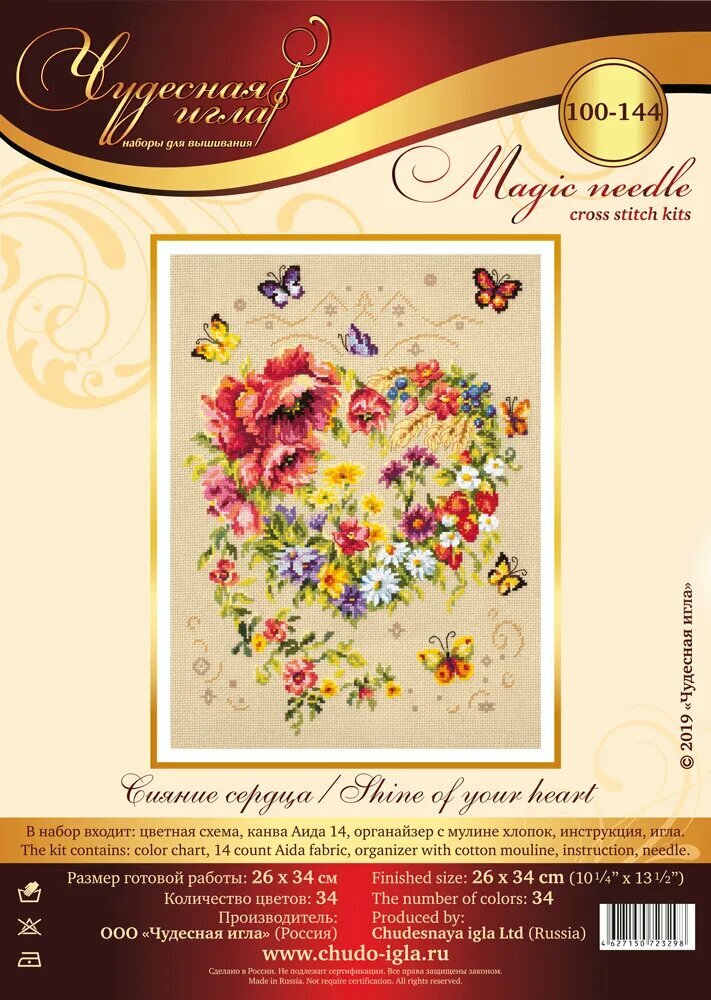Набор для вышивания Чудесная Игла 100-144 "Сияние сердца" 26 х 34 см информация: