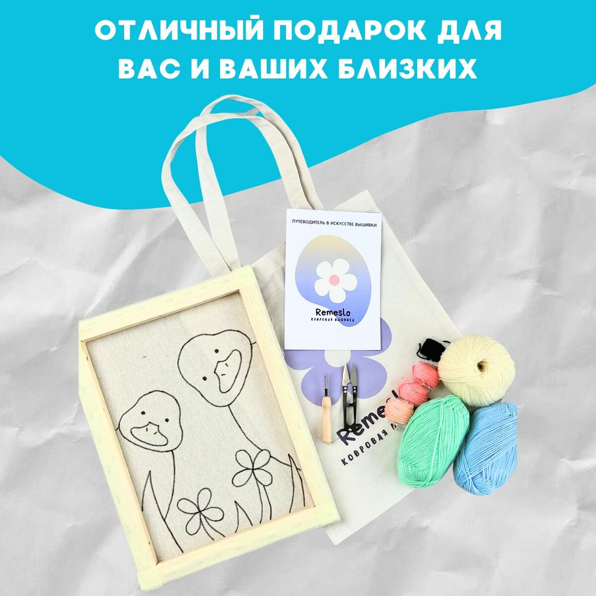 10 цен на Набор для творчества, набор для вышивания в ковровой технике "утки" 40х30см