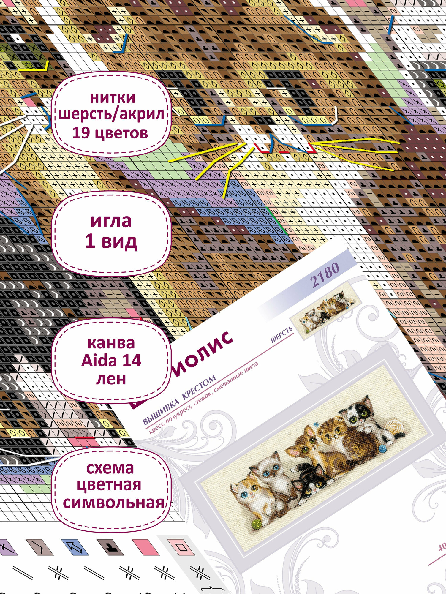 Набор для вышивания крестом Риолис, вышивка крестиком "Котята" 40*15см, 2180 информация: