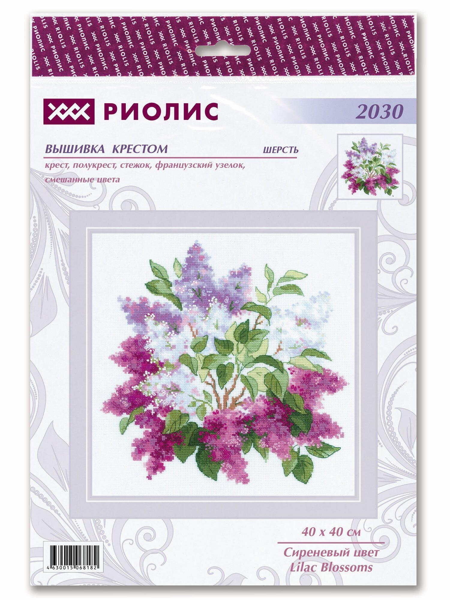Набор для вышивания крестом Риолис, вышивка крестиком "Сиреневый цвет", 40*40 см, 2030 информация: