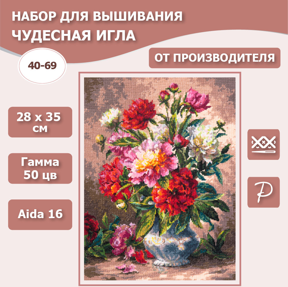 Набор для вышивания Чудесная Игла 40-69 "Пионы" 28 х 35 см информация: