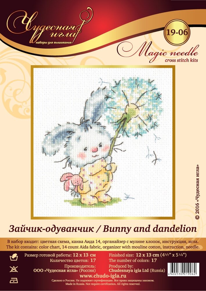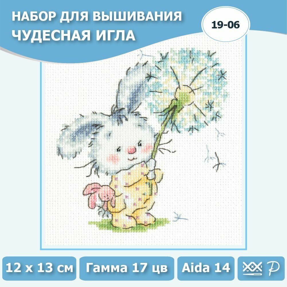 19-06 "Зайчик-одуванчик". Набор для вышивания крестом Чудесная игла 12 х 13 см. информация: