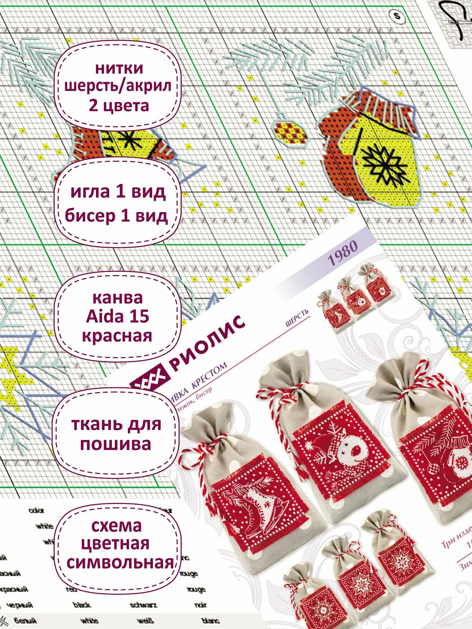 Набор для вышивания крестом Риолис, вышивка крестиком Мешочки "Зимние подарочки", 10*18см, 1980 информация: