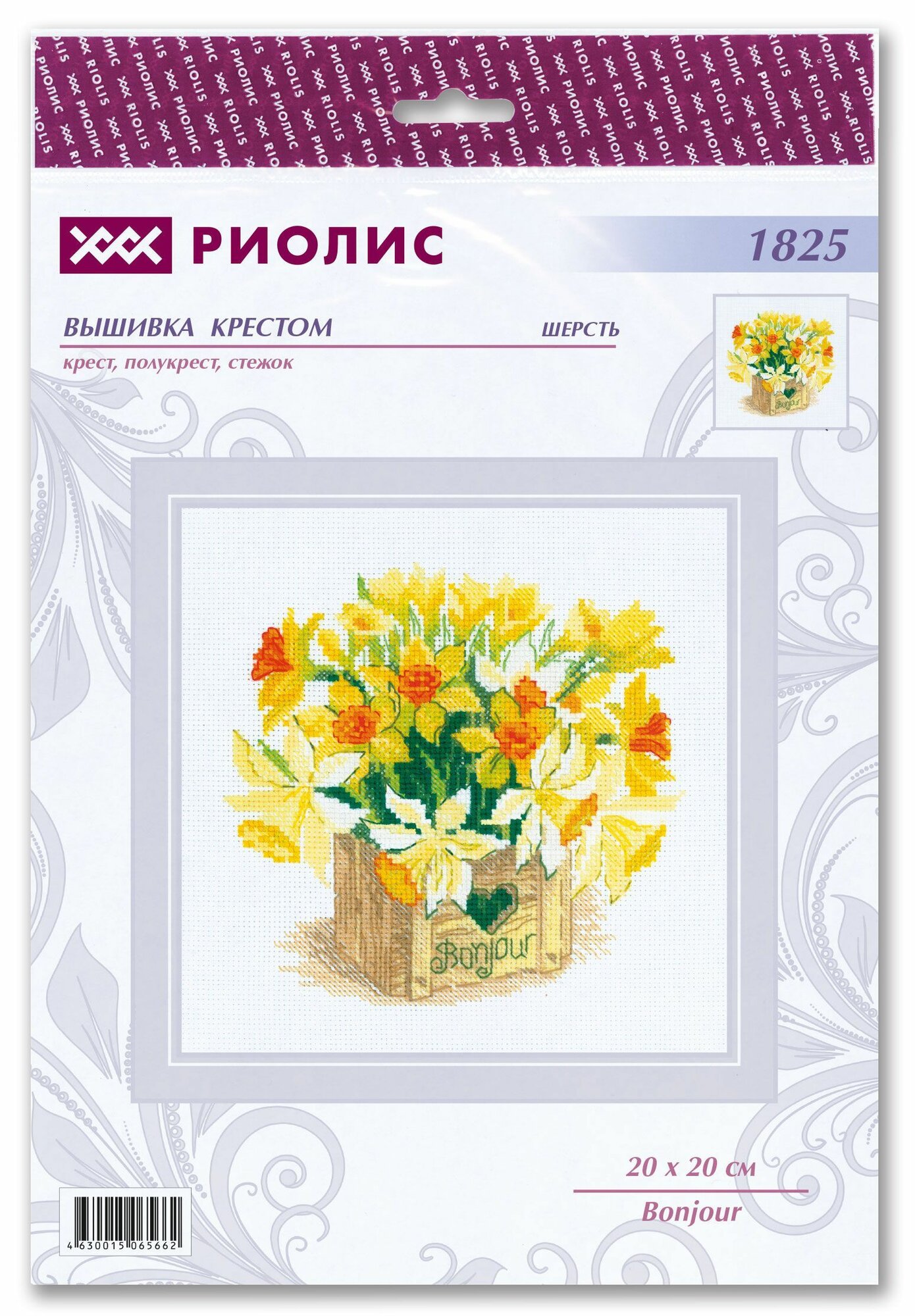 Набор для вышивания крестом Риолис, вышивка крестиком "Bonjour", 20*20 см, 1825 информация: