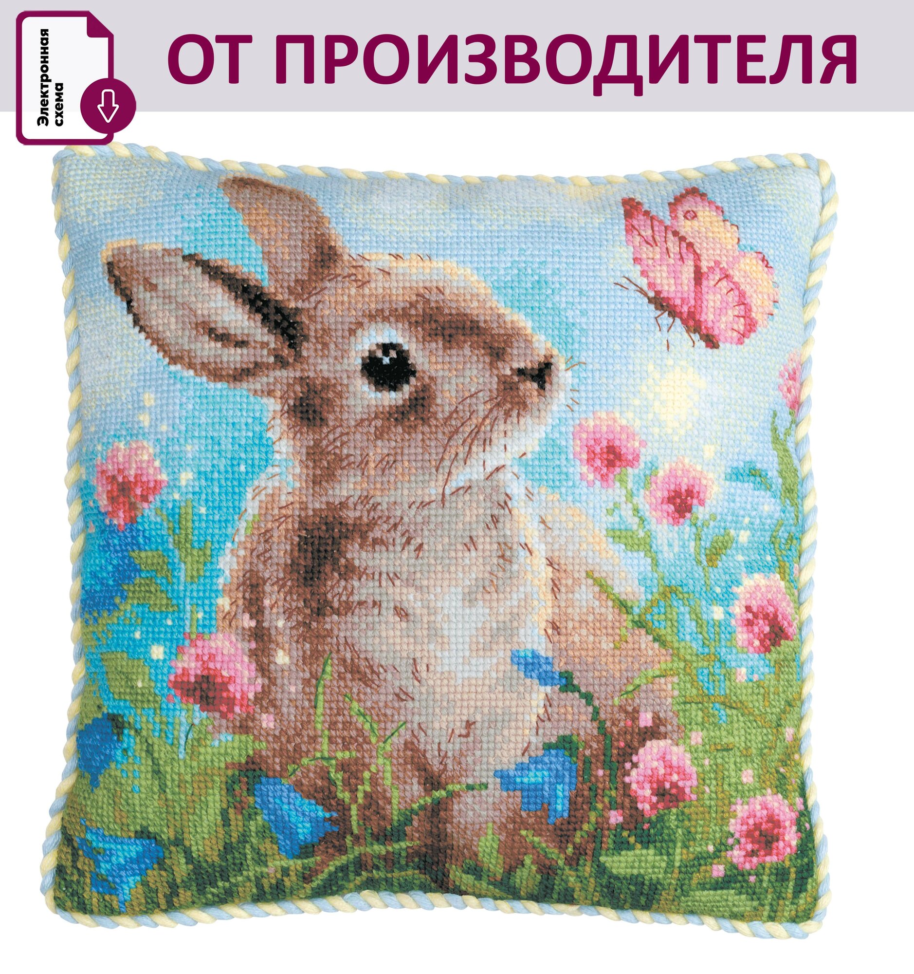 10 цен на Набор для вышивания крестом Риолис, вышивка крестиком подушка "Кролик в клевере", 30*30 см, 2060