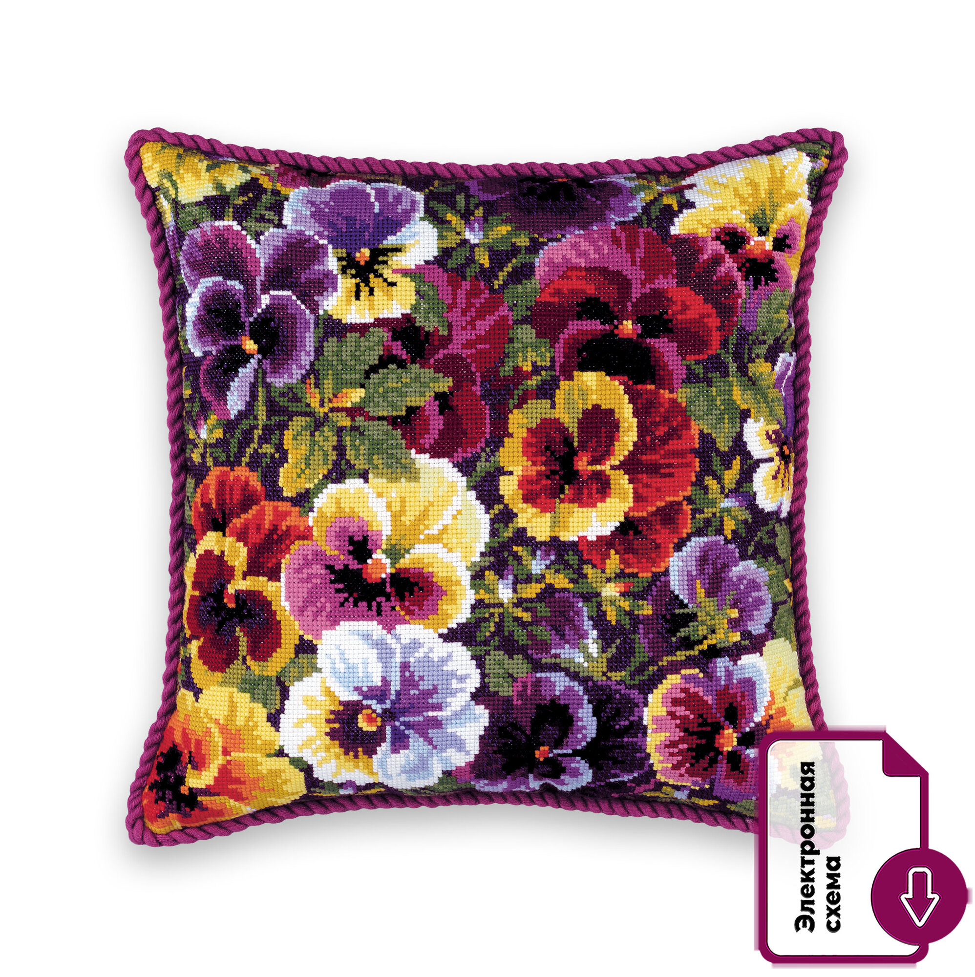 Набор для вышивания крестом Риолис, вышивка крестиком подушка "Роскошные анютки", 40*40 см, 1999 информация: