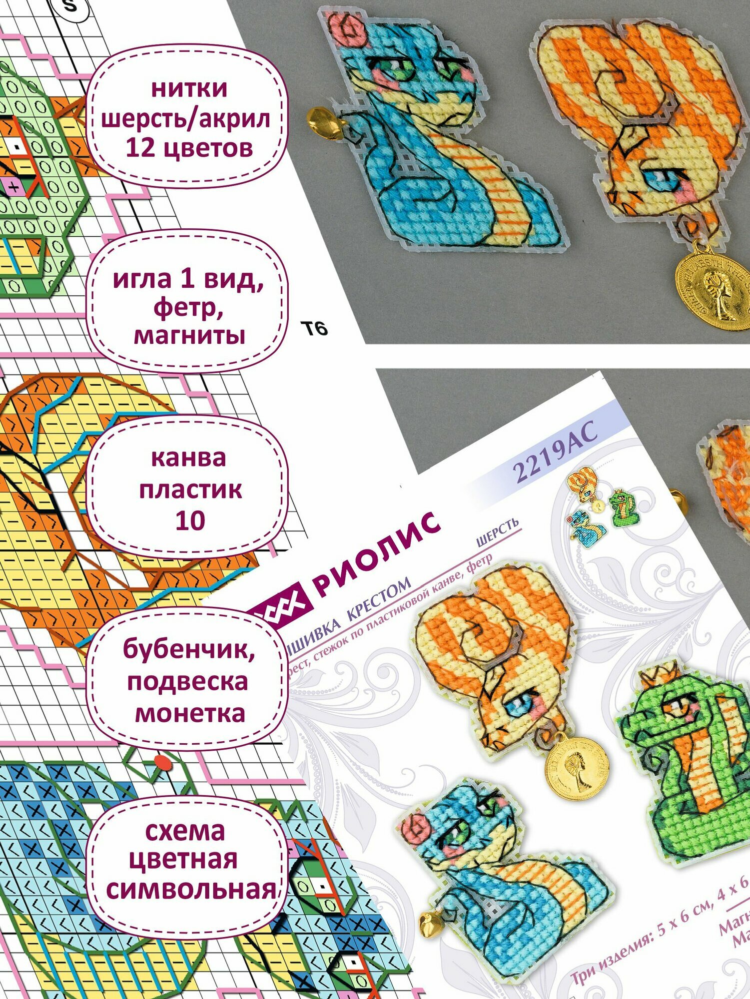 10 цен на Набор для вышивания крестом Риолис, магниты "Змейки" 5*6см, 2219АС