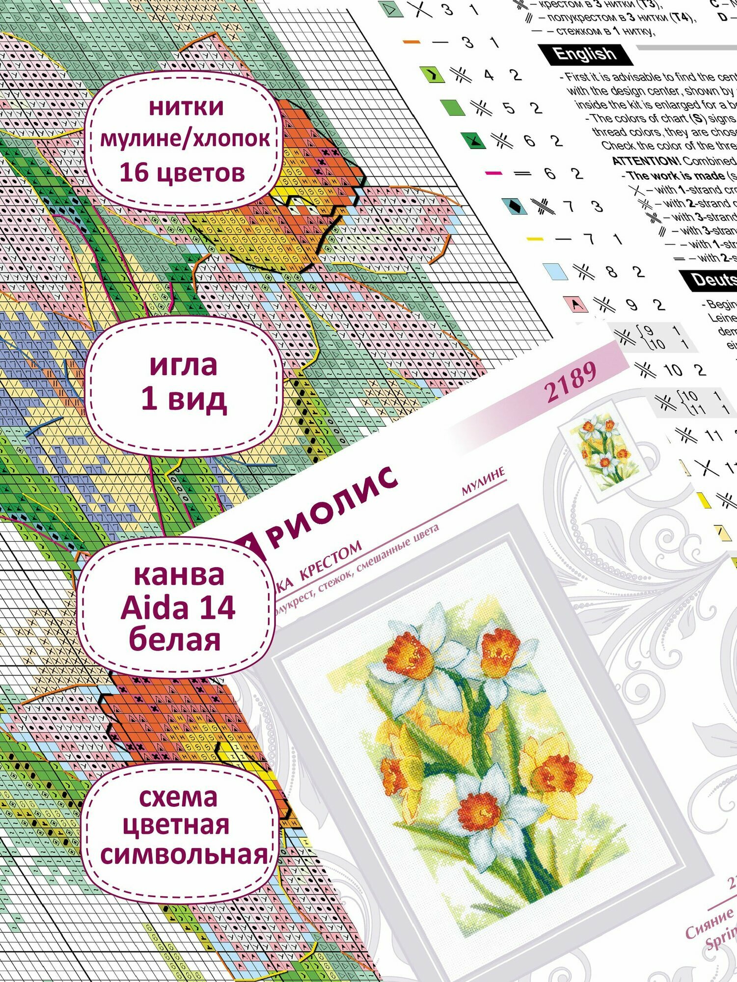 Набор для вышивания крестом Риолис, вышивка крестиком "Сияние весны. Нарциссы", 21*30 см, 2189 информация: