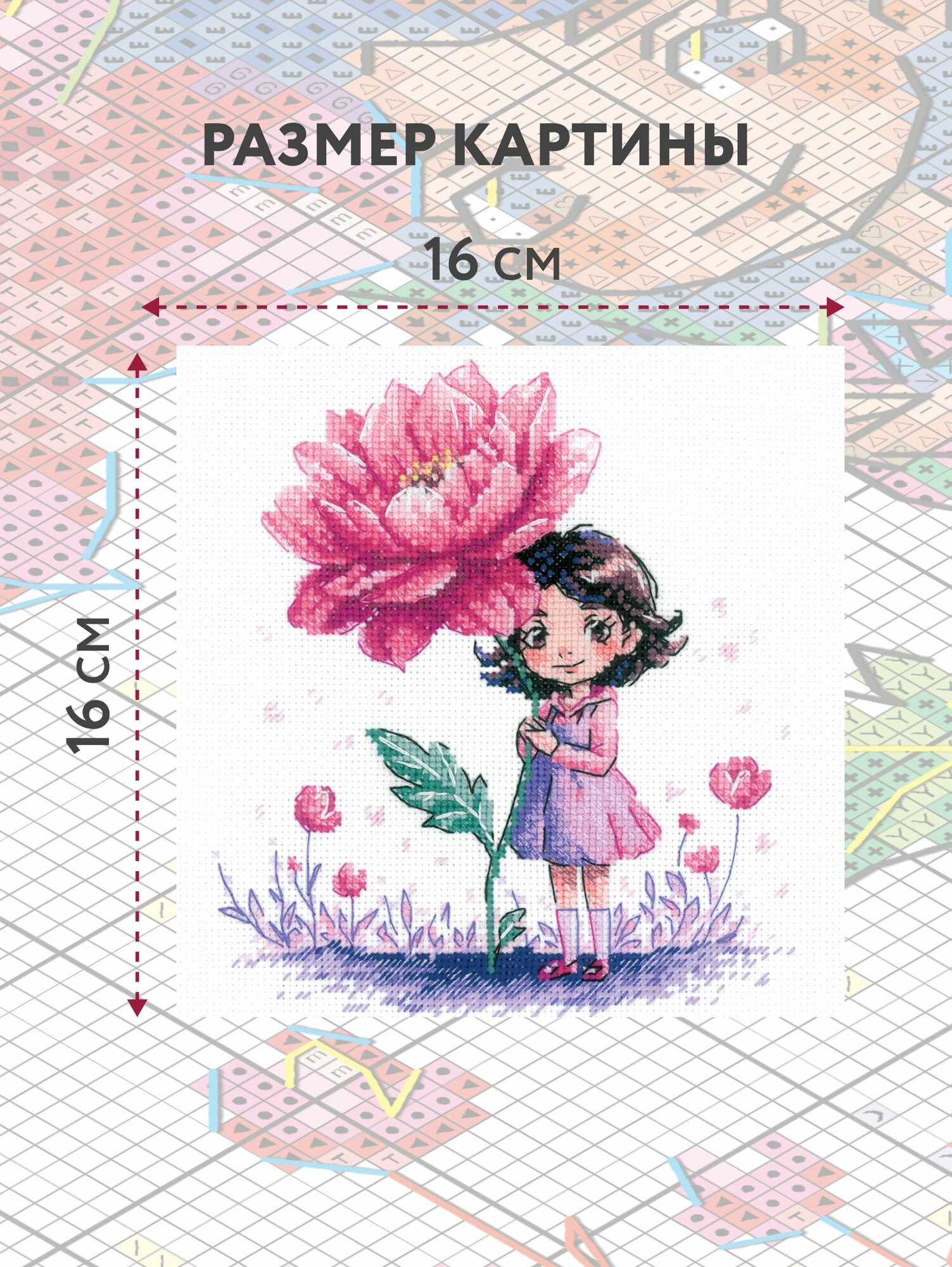 Набор для вышивания крестом Арти Крафти, вышивка крестиком "Любимый цветочек", 16*16см, АК0004 информация: