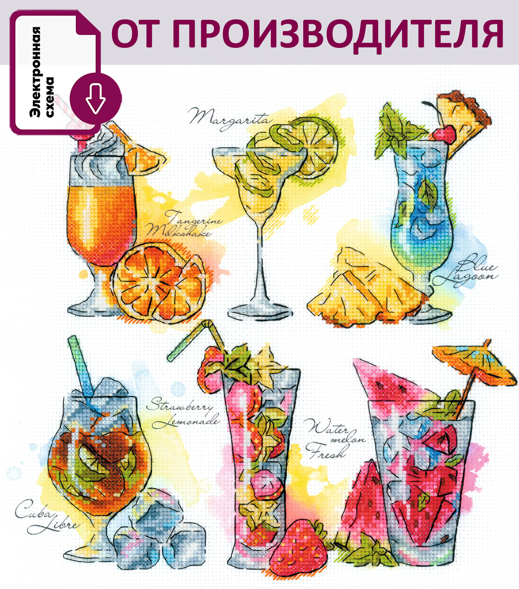 Набор для вышивания крестом Риолис, вышивка крестиком "Яркие коктейли", 25*25 см, 0098-РТ информация: