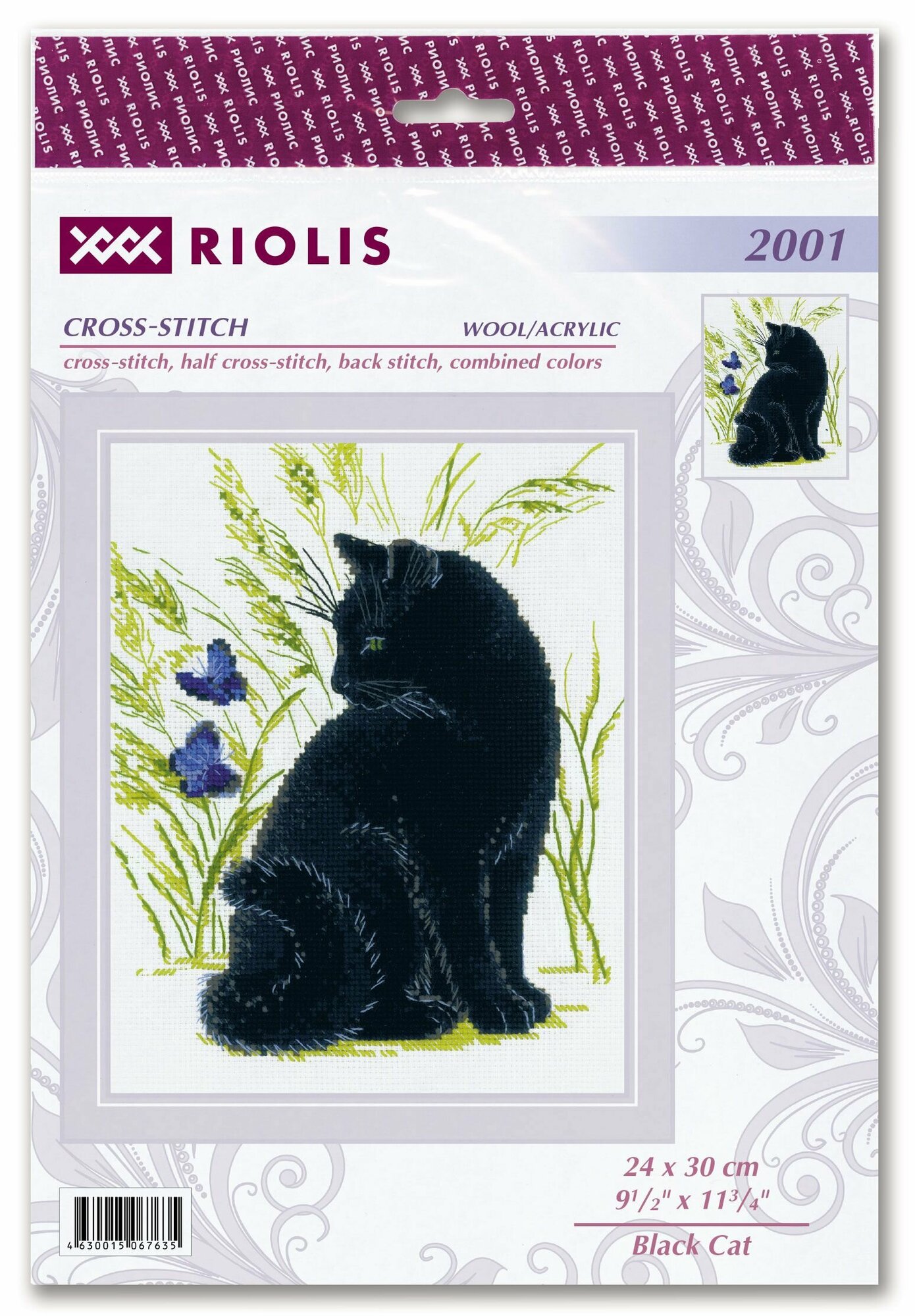 Набор для вышивания крестом Риолис, вышивка крестиком "Чёрный кот" 24*30см, 2001 информация: