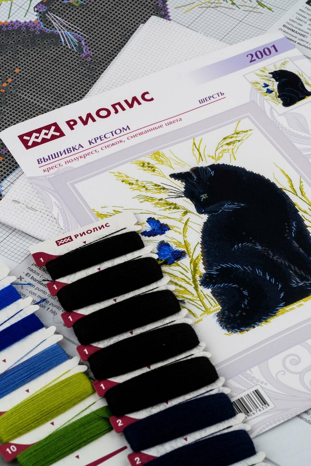 10 цен на Набор для вышивания крестом Риолис, вышивка крестиком "Чёрный кот" 24*30см, 2001