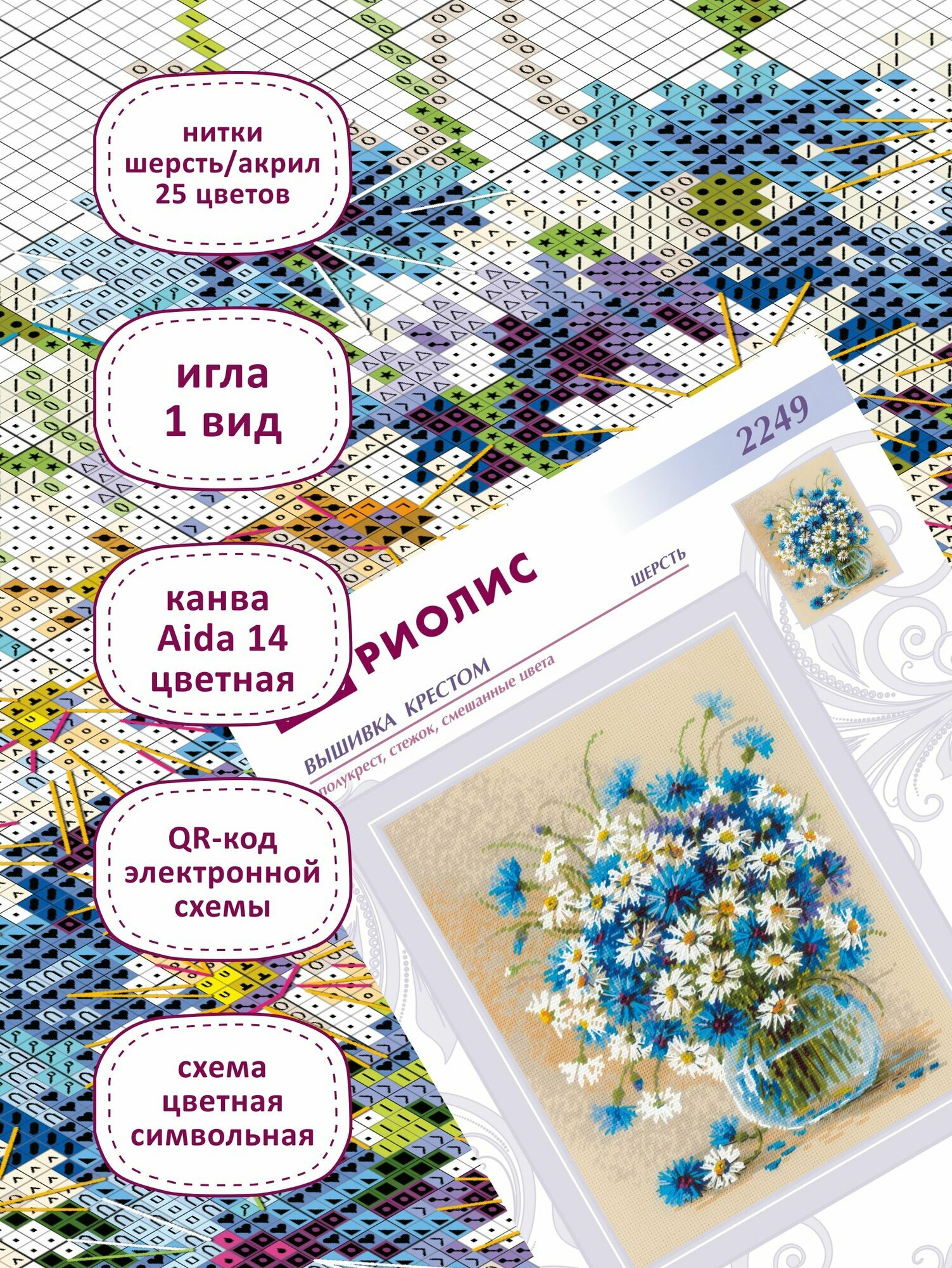 Набор для вышивания крестом Риолис, вышивка крестиком "Ромашки и васильки", 24*30 см, 2249 информация: