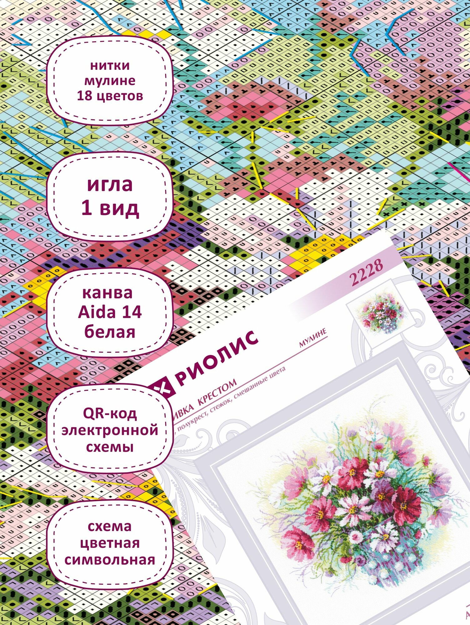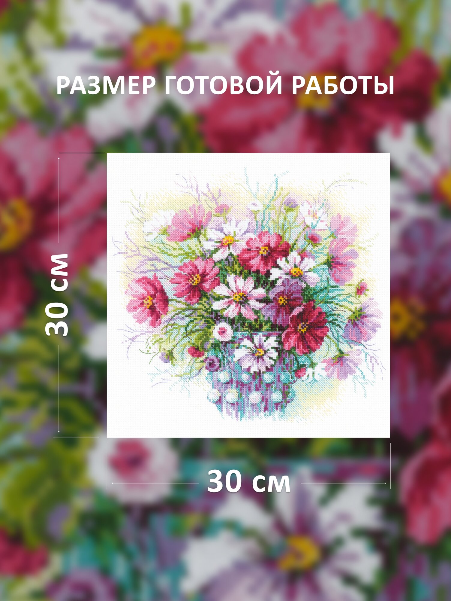 Набор для вышивания крестом Риолис, вышивка крестиком "Акварельные космеи", 30*30см, 2228 информация: