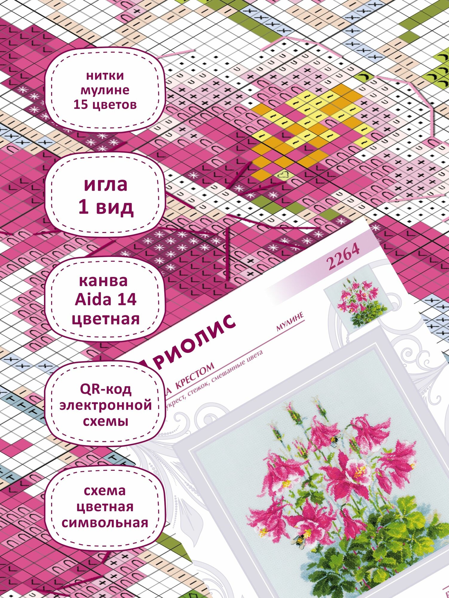 Набор для вышивания крестом Риолис, вышивка крестиком "Розовая аквилегия", 30*30см, 2264 информация: