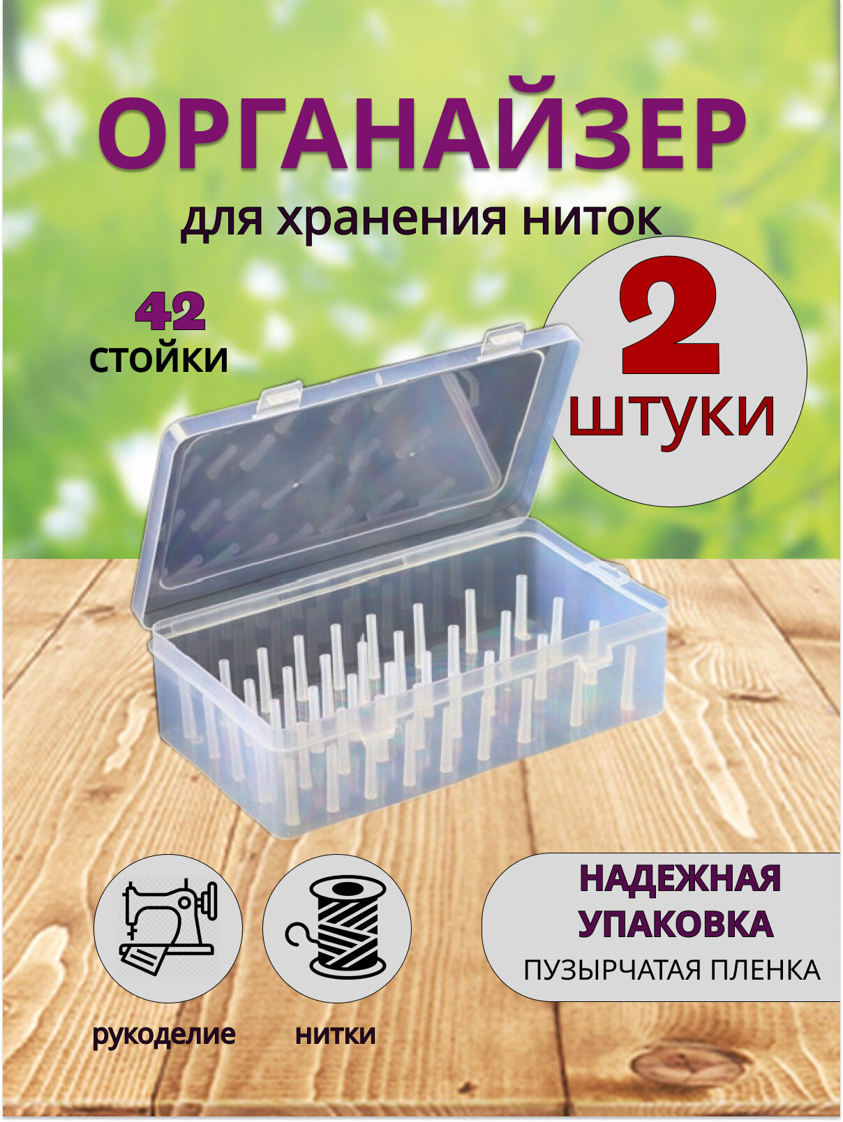 Отзывы на Органайзеры для ниток ДИМАХ, прямоугольные, прозрачные, пластик, 42 стойки, 2 шт
