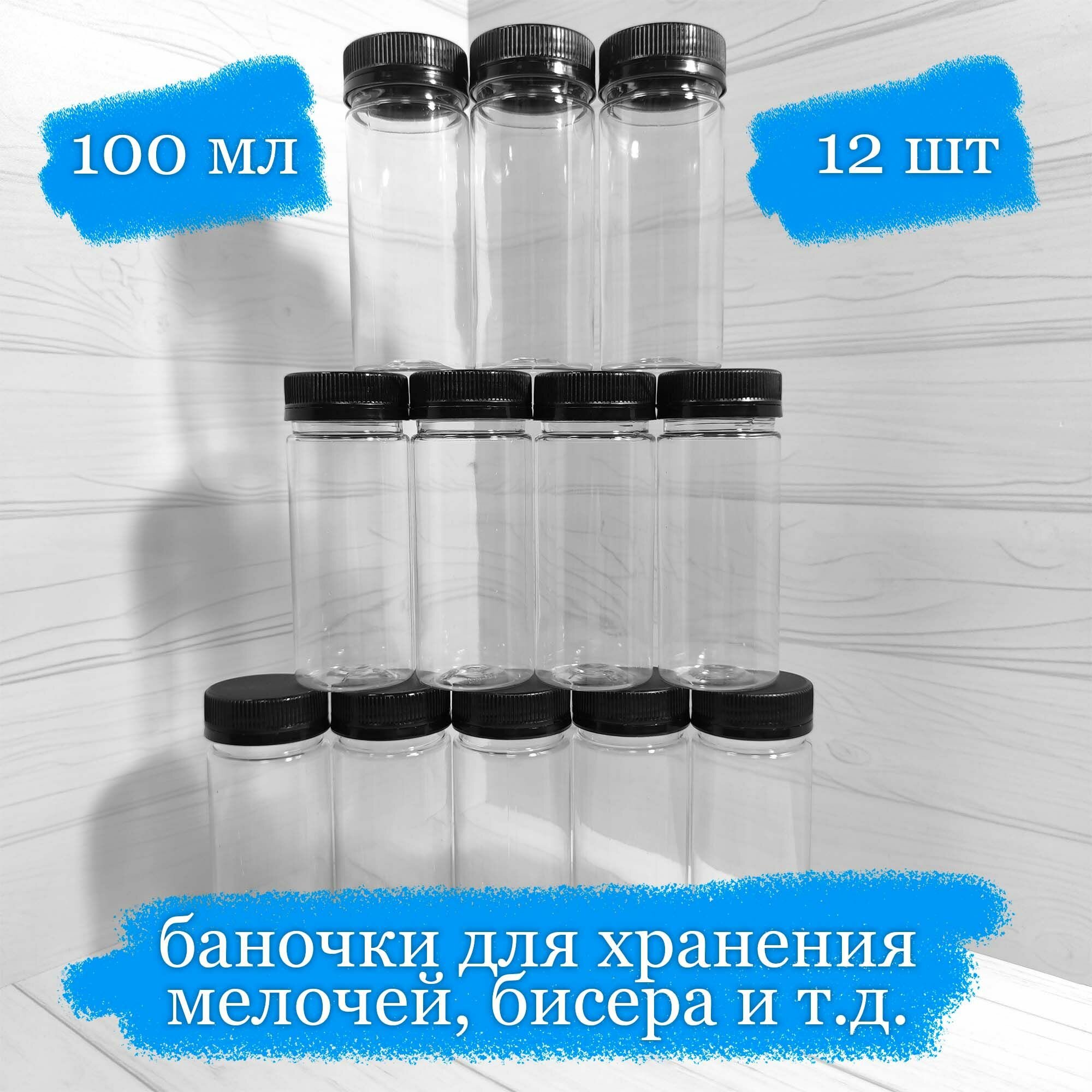 Баночки пластиковые для хранения с чёрной крышкой - 100 мл - 12 шт информация: