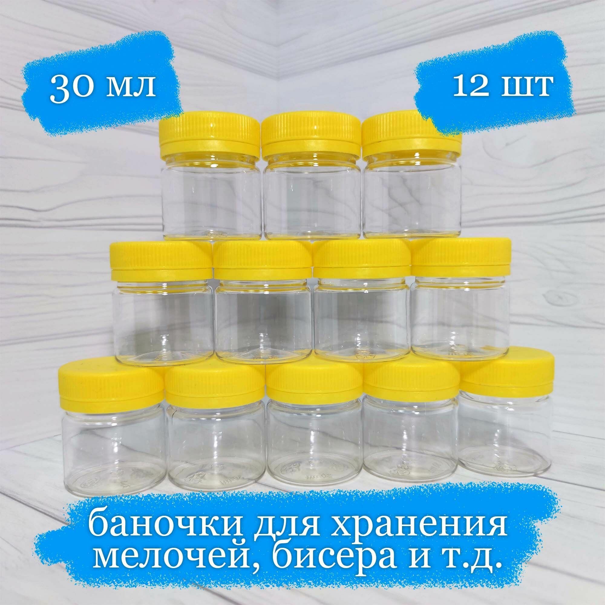 Баночки пластиковые для хранения с жёлтой крышкой - 30 мл - 12 шт информация: