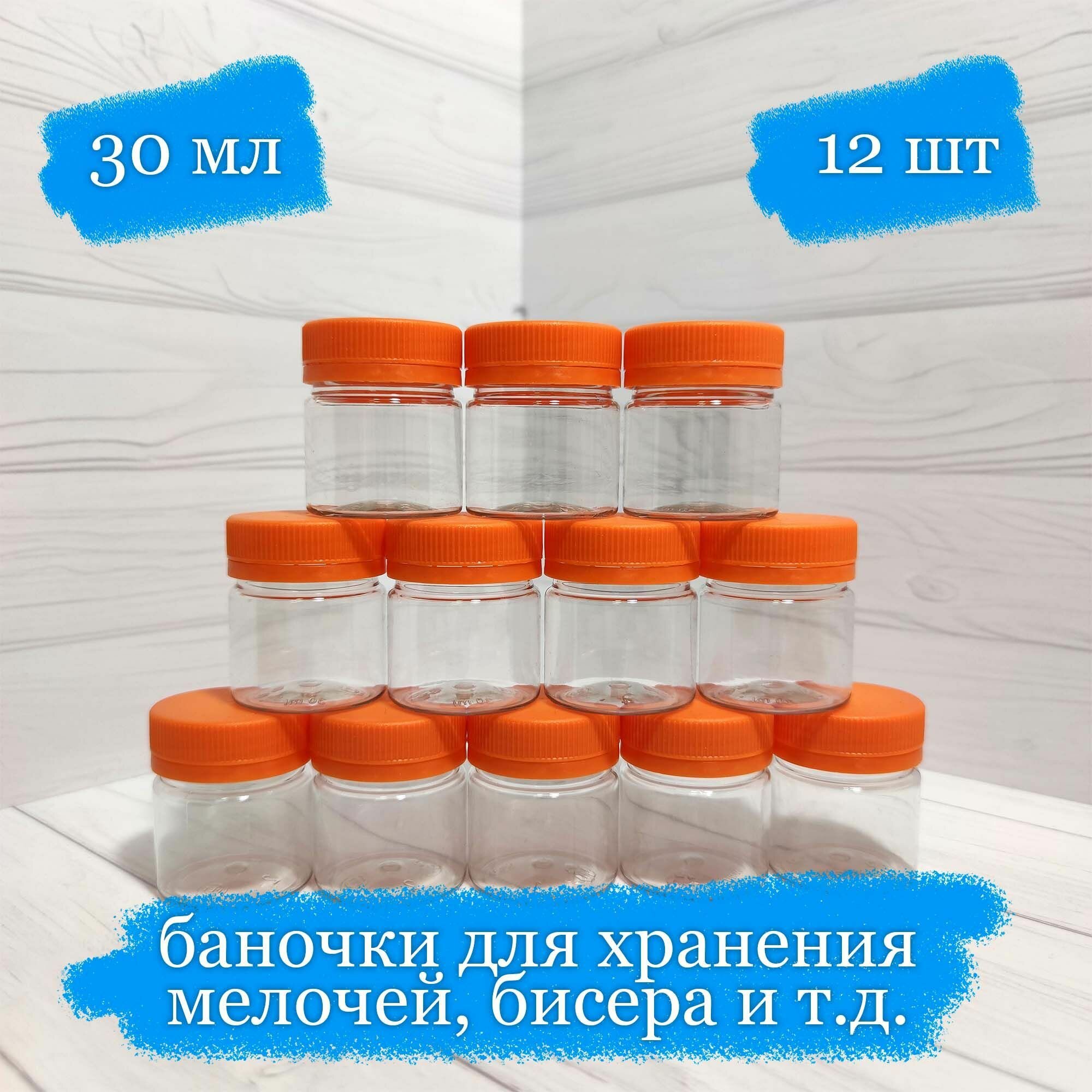 Баночки пластиковые для хранения с оранжевой крышкой - 30 мл - 12 шт информация: