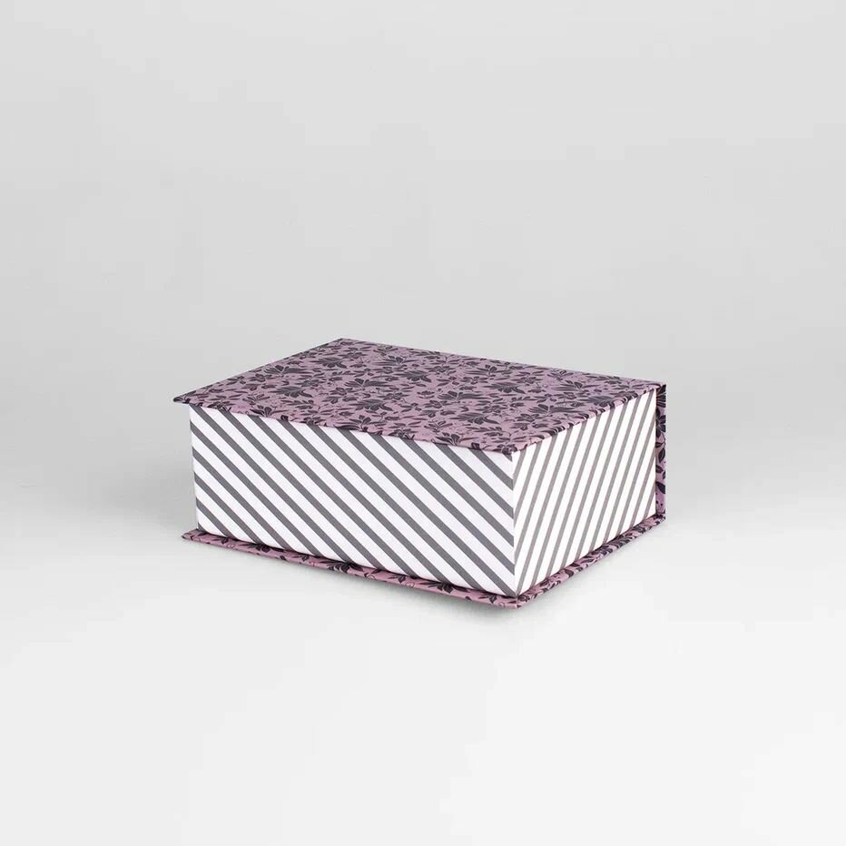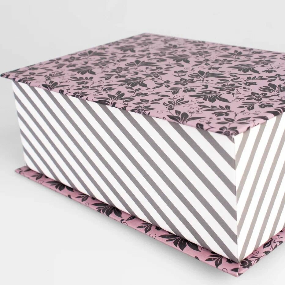 Коробка для хранения украшений, мелочей и аксессуаров средняя, 205 x 145 x 75 мм. "Цветы/полоски", розовый информация: