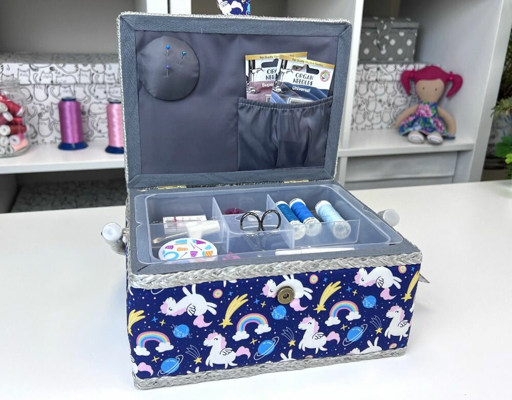 Шкатулка для рукоделия и шитья "Единорог" (синяя) с органайзером информация: