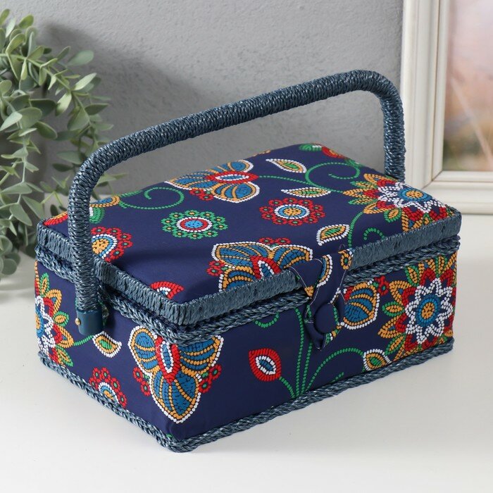 10 цен на Шкатулка для рукоделия и шитья «Цветочная мозаика», хранение ниток, иголок, мелочи, 24×16×11 см