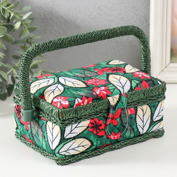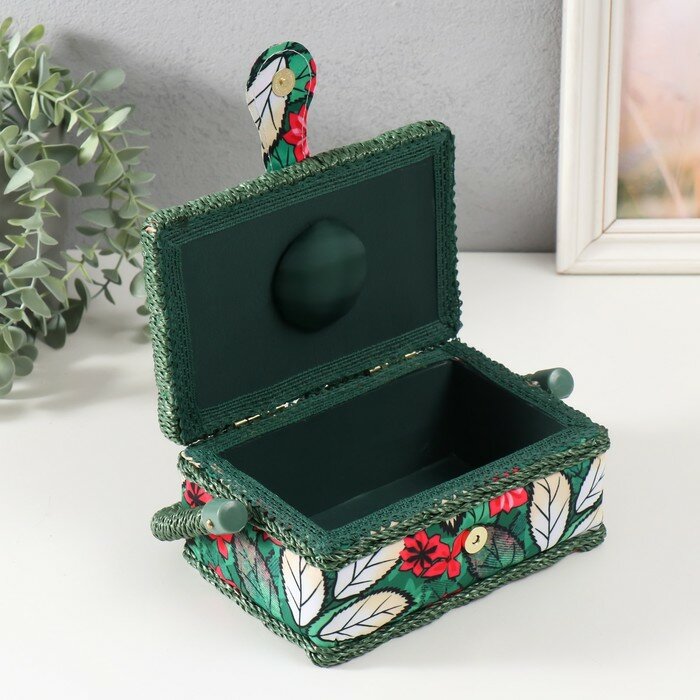 10 цен на Шкатулка для рукоделия и шитья «Пуансеттия на зелёном», хранение ниток, иголок, мелочи, 18×12×9.5 см