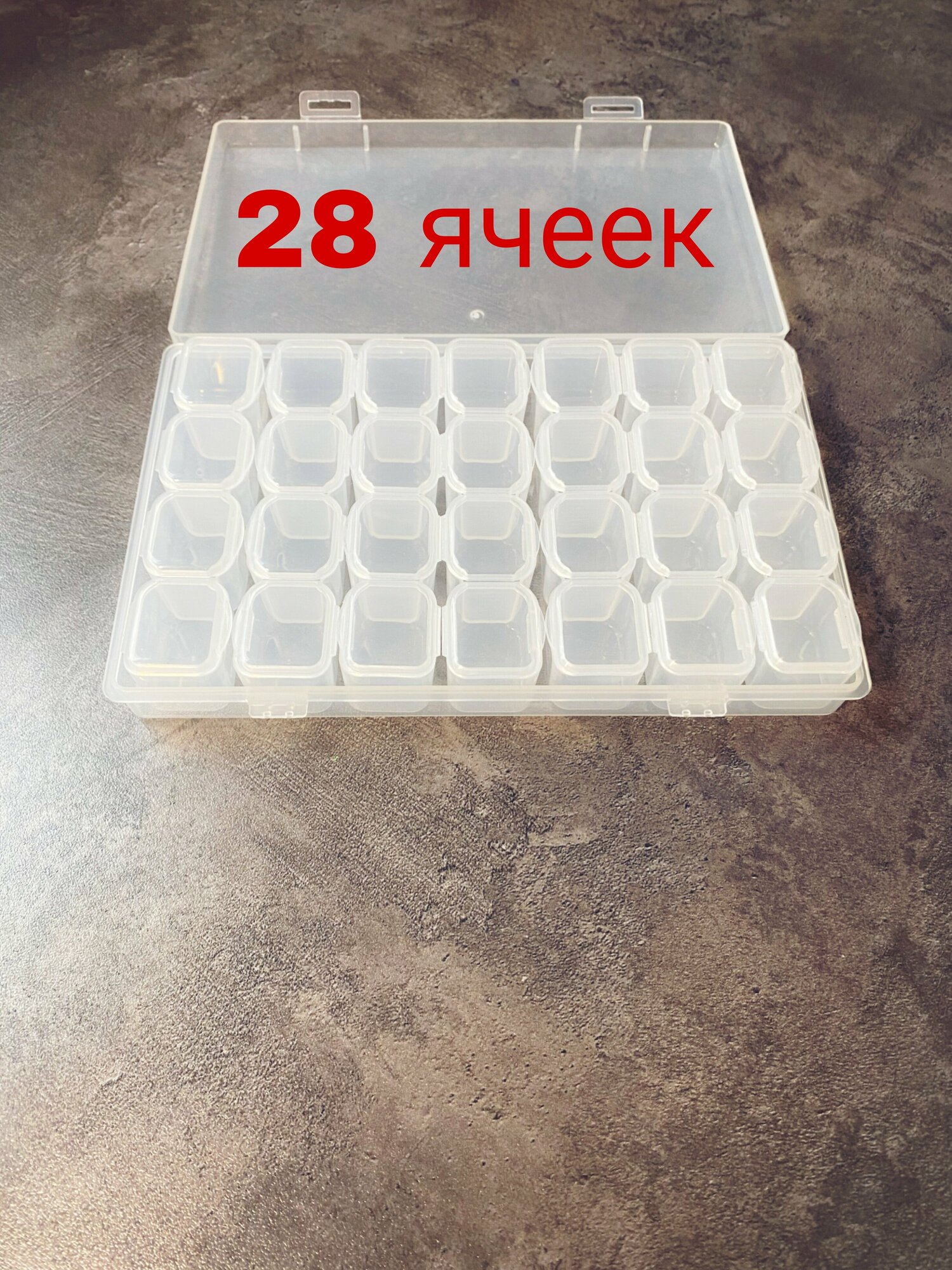 10 цен на Контейнер для бисера, органайзер для рукоделия 28 ячеек прозрачный, таблетница