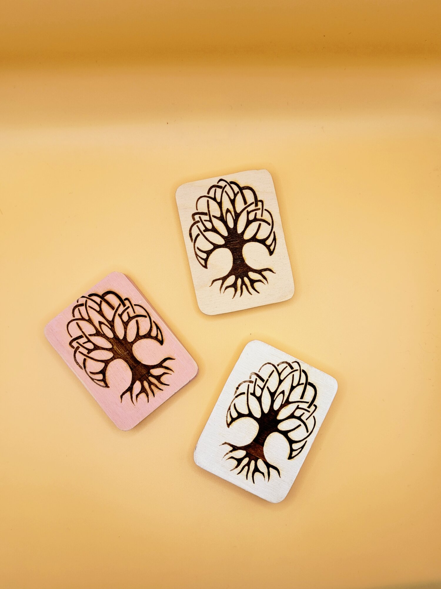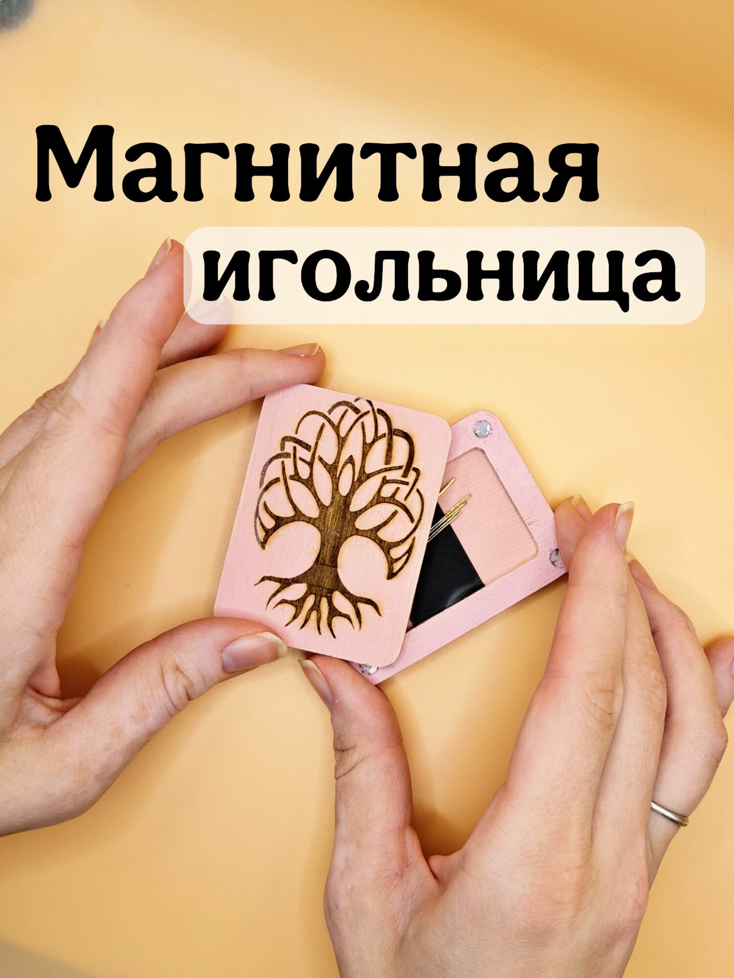 Магнитная игольница деревянная "Дерево жизни", розовая, для вышивальных игл, дорожная информация: